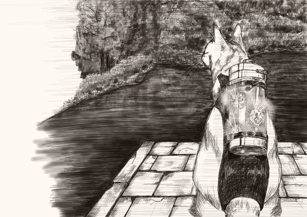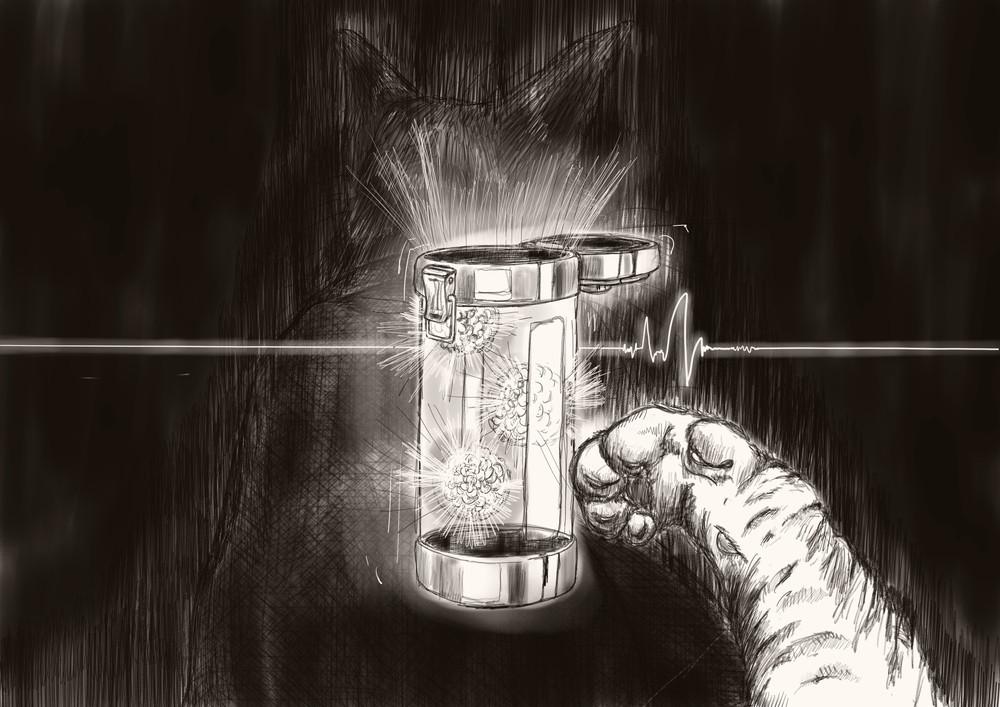 落ち着いて、すこし周りが見えるようになったひさは、花の入った筒を前足でちょんとこづいた。花はそれに反応するかのように明滅のリズムを変える。