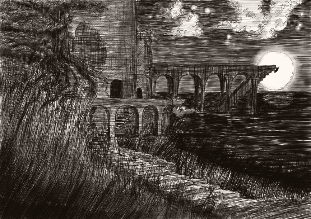 そして、音道さんに教えられたとおり城から湖の上へながくのびる途切れた橋の突端まできた。